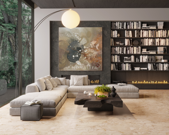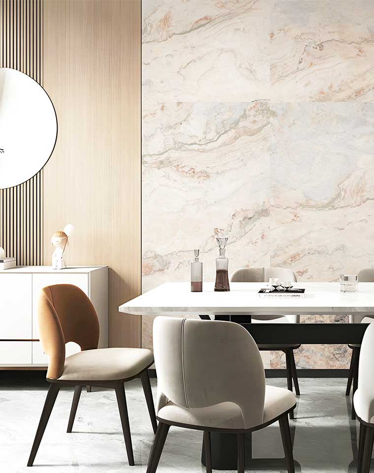 “中國(guó)式雅致生活”是中國(guó)人一直以來(lái)特有的生活哲學(xué)。隨著源源流淌的國(guó)風(fēng)美學(xué)與現(xiàn)代生活的簡(jiǎn)約新潮碰撞,中國(guó)式雅致生活內(nèi)涵得到進(jìn)一步深化,成為當(dāng)下及未來(lái)的主流家居趨勢(shì)。蒙娜麗莎以中國(guó)式雅致生活特有的“質(zhì)樸”、“精致”、“適度”、“雅正”、“簡(jiǎn)素”為基本的美學(xué)標(biāo)準(zhǔn),從中國(guó)文化傳統(tǒng)的原生色彩中汲取靈感,擷取傳統(tǒng)宮廷奢華飾品紋樣元素,創(chuàng)新推出800×2400×8.5mm國(guó)風(fēng)·簡(jiǎn)奢系列大板。