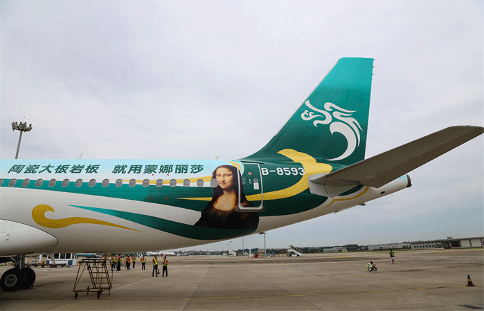 本次啟航的“蒙娜麗莎號(hào)”亞運(yùn)主題航班,在機(jī)身上巧妙結(jié)合著名畫(huà)家達(dá)芬奇創(chuàng)作的《蒙娜麗莎》畫(huà)像和端莊飄逸的中國(guó)傳統(tǒng)祥云圖案,與蒙娜麗莎標(biāo)志性品牌Logo主題色完美交融,打造出穿梭于萬(wàn)米高空的藝術(shù)范客機(jī)。