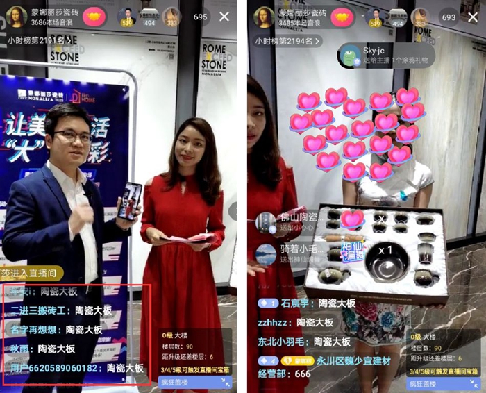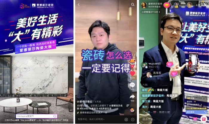 從線下門店到抖音APP,蒙娜麗莎再以抖音直播為抓手,開啟“云家裝”,與消費(fèi)者線上對話。3月21日晚上7點(diǎn)半,蒙娜麗莎瓷磚聯(lián)動(dòng)全國經(jīng)銷商,在抖音平臺舉行了一場主題為“讓美好生活,大有精彩”的直播活動(dòng),美女主持搭檔資深家居顧問,帶領(lǐng)觀眾鑒賞上百款蒙娜麗莎陶瓷大板產(chǎn)品,從花色、風(fēng)格、性能等多個(gè)維度,教大家鑒別挑選好的大板產(chǎn)品,并對大板鋪貼工具進(jìn)行了介紹。直播過程中,更送出了ipad平板、瓷藝餐具、茶具禮盒等豐富獎(jiǎng)品。