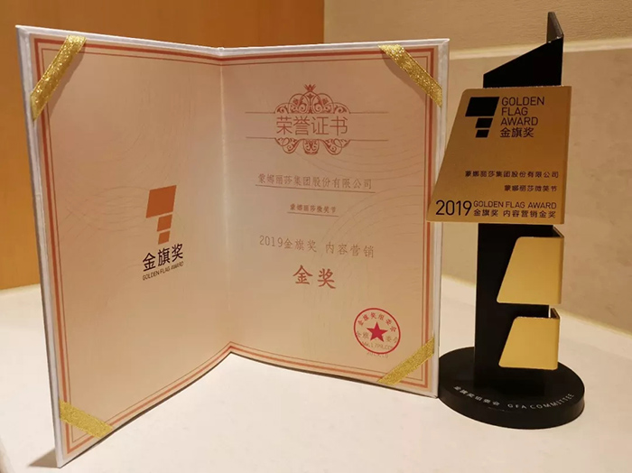 2019年10月26日,一年一度的金旗獎頒獎盛典在杭州舉行。"蒙娜麗莎微笑節(jié)"品牌活動經(jīng)過嚴(yán)格評選,從數(shù)百個案例中脫穎而出,榮獲2019金旗獎內(nèi)容營銷金獎,充分彰顯了蒙娜麗莎引領(lǐng)內(nèi)容營銷新風(fēng)向,推動品牌公關(guān)創(chuàng)新發(fā)展的獨特價值。