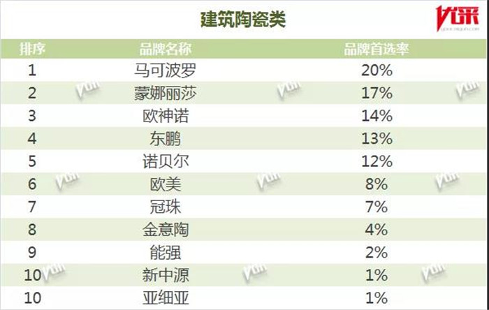 經(jīng)過層層科學(xué)嚴(yán)格、客觀公正的測評,蒙娜麗莎排名遙遙領(lǐng)先,最終獲得建筑陶瓷類品牌首選率第二名。