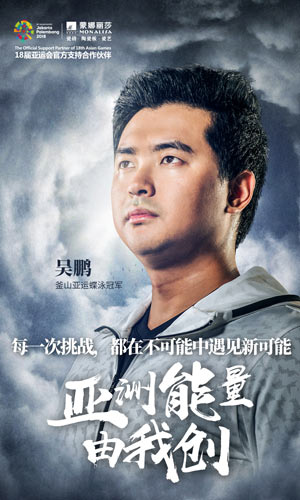 ▲2008年體操奧運冠軍江鈺源、2002年釜山亞運蝶泳冠軍吳鵬助威亞運