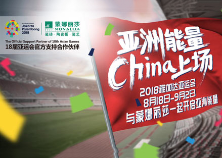代表著中國品牌、中國制造,蒙娜麗莎出征印尼亞運會,弘揚中華民族品牌的實力,助力印尼亞運會的成功舉辦,為蒙娜麗莎注入滿滿的正能量,散發(fā)出激情、活力、健康、向上的亞洲能量!