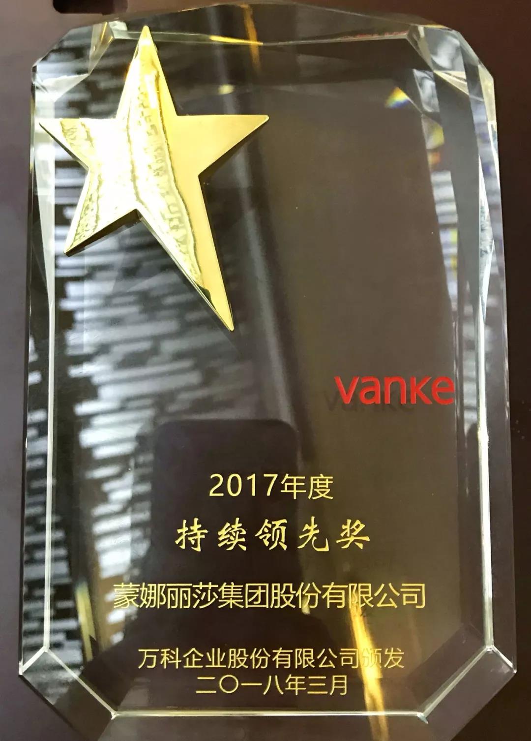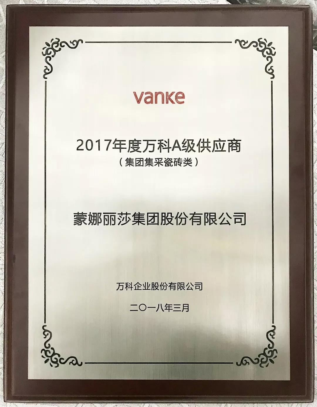 蒙娜麗莎獲“2017年度萬科A級供應(yīng)商”稱號