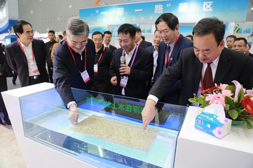 展會領(lǐng)導(dǎo)親臨感受“能浮在水上的陶瓷板”