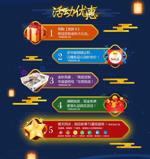 活動(dòng)期間,尊貴業(yè)主尊享7S高貴購(gòu)物體驗(yàn),星級(jí)導(dǎo)購(gòu)、預(yù)約量尺、送貨上門(mén)、免費(fèi)設(shè)計(jì)、鋪貼指導(dǎo)、售后跟蹤、上門(mén)退補(bǔ)貨。新品大賞新,星級(jí)貼心服務(wù),同慶祖國(guó)榮耀華誕!