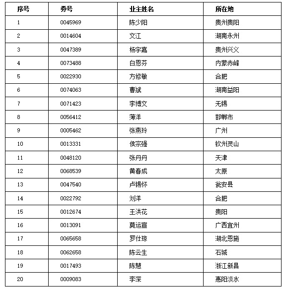—20戶(hù)免單大獎(jiǎng)中獎(jiǎng)名單—