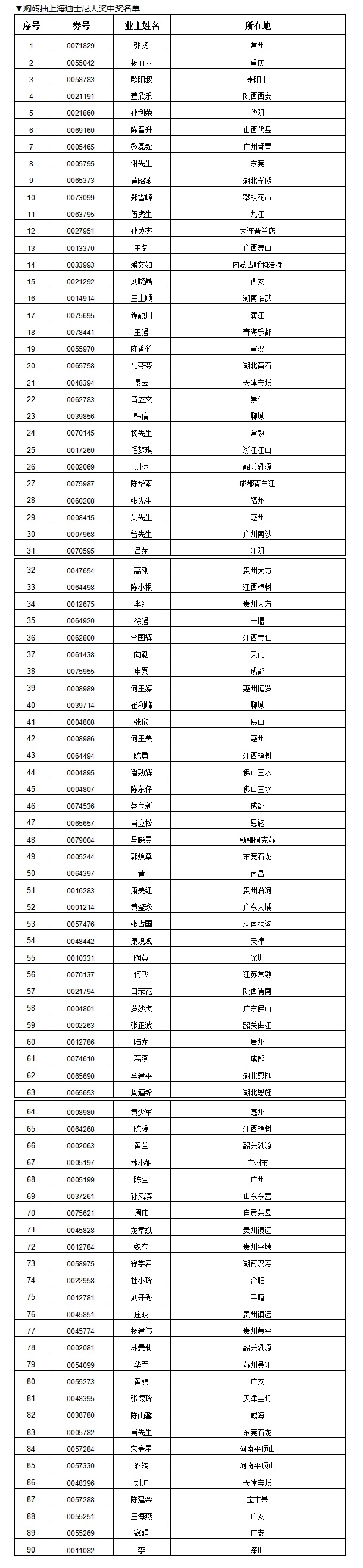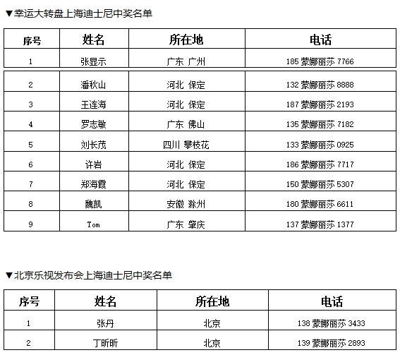 —上海迪士尼雙人套票中獎(jiǎng)名單—