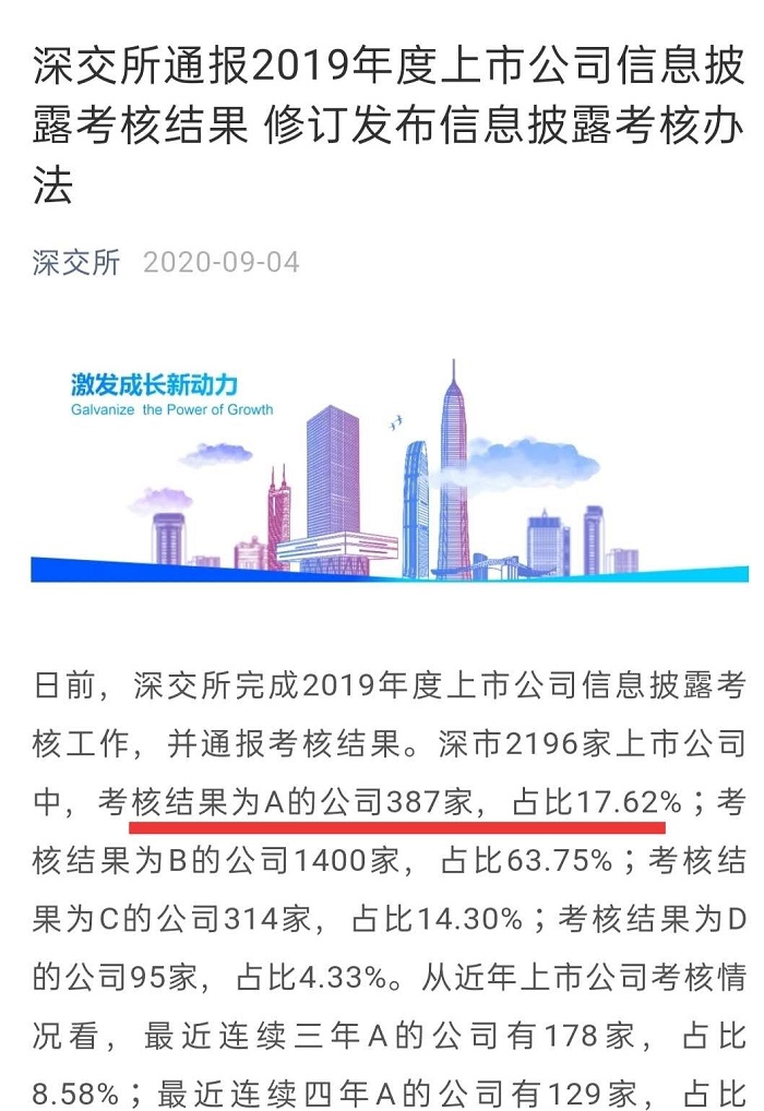據(jù)悉,深市2196家上市公司中,考核結(jié)果為A的公司387家,占比17.62%。深交所同日發(fā)布新修訂的《上市公司信息披露工作考核辦法》以提高信息披露質(zhì)量為核心,以深化分類監(jiān)管為導(dǎo)向,結(jié)合現(xiàn)有制度執(zhí)行效果和市場新形勢新變化,從信息披露考核方式、考核內(nèi)容和結(jié)果用途三個方面優(yōu)化完善,進一步提高考核評價機制的透明度和實效性。