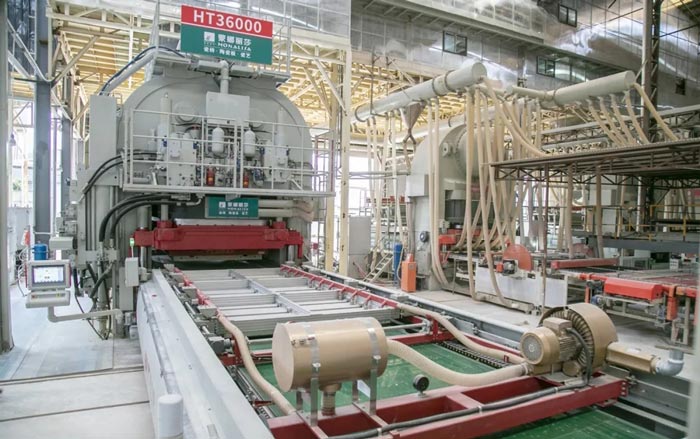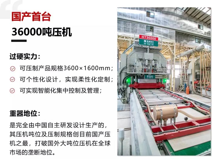 2019年7月4日,由蒙娜麗莎與恒力泰合力研發(fā)的首臺(tái)HT36000壓機(jī)在蒙娜麗莎集團(tuán)西樵生產(chǎn)基地正式上線運(yùn)行,并且成功壓制出3600×1600mm超大規(guī)格陶瓷大板。這是迄今為止國(guó)產(chǎn)首臺(tái)超大噸位壓機(jī),對(duì)中國(guó)建陶行業(yè)而言,是一項(xiàng)標(biāo)志性的技術(shù)創(chuàng)新,亦是衡量陶瓷大板生產(chǎn)實(shí)力的重要標(biāo)志。36000噸壓機(jī)的上線,意味著蒙娜麗莎集團(tuán)3600×1600mm超大規(guī)格巖板即將面世。
