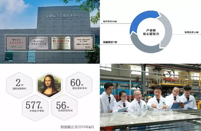蒙娜麗莎集團建有四大省級以上的科技創(chuàng)新平臺,成功申請國家及國際專利累積超過695項,推動企業(yè)在行業(yè)革新中屢屢領先;與眾多高校、研究院、外企建立產(chǎn)學研合作,在戰(zhàn)略發(fā)展、專家智庫、陶瓷材料研發(fā)等方面進行深入交流;并致力于培養(yǎng)優(yōu)秀科研人才,有效推動陶瓷行業(yè)相關核心技術的解決,成為企業(yè)產(chǎn)品創(chuàng)新、生產(chǎn)創(chuàng)新的不竭動力。