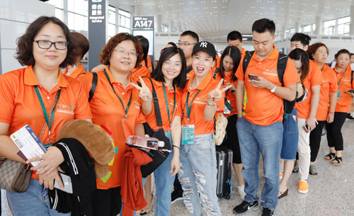 ▲亞運包機百人團集結(jié)完畢