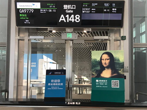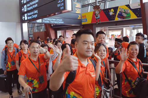 ▼經(jīng)過長途跋涉的飛行,蒙娜麗莎助威團到達雅加達機場