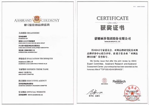 9月9日,由亞洲品牌網(wǎng)、香港大公報(bào)、外交部中國亞洲經(jīng)濟(jì)發(fā)展協(xié)會(huì)以及商務(wù)部《國際商報(bào)社》聯(lián)合主辦的第十二屆亞洲品牌盛典在香港嘉里酒店隆重舉行。頒獎(jiǎng)盛典上,蒙娜麗莎憑借強(qiáng)勁的市場(chǎng)占有率與優(yōu)異的品牌美譽(yù)度榮膺“亞洲品牌500強(qiáng)”稱號(hào)?,F(xiàn)場(chǎng)星光熠熠,大咖云集,吸引了來自全球及亞洲政界領(lǐng)導(dǎo)、品牌領(lǐng)袖、資本大咖、國內(nèi)外經(jīng)濟(jì)學(xué)家、媒體機(jī)構(gòu)負(fù)責(zé)人等1000多人齊聚香港,共同見證亞洲品牌光輝與榮耀的時(shí)刻。