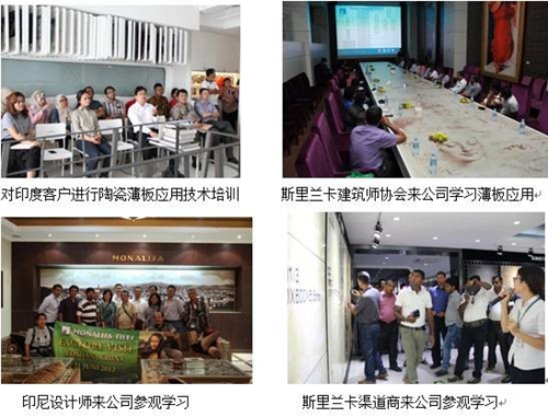 近年來,在國(guó)家“一帶一路”戰(zhàn)略的背景下,蒙娜麗莎集團(tuán)主動(dòng)調(diào)整市場(chǎng)戰(zhàn)略,加大對(duì)自主品牌的出口力度,公司通過代理制的方式,先后在印尼、印度、斯里蘭卡、柬埔寨、馬來西亞、沙特、伊朗等國(guó)家建立了蒙娜麗莎品牌展廳和專賣店,由此吹響了“中國(guó)制造”挺進(jìn)國(guó)際市場(chǎng)的沖鋒號(hào)。