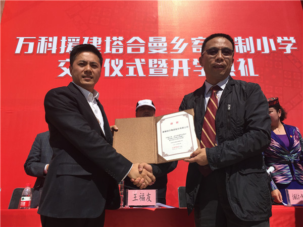 當天,在深圳市對口援疆前方指揮部等見證下,萬科、蒙娜麗莎集團、中建二局、筑博設計股份有限公司、亞士創(chuàng)能科技(上海)股份有限公司等5家愛心企業(yè)遞交鑰匙,正式將塔合曼鄉(xiāng)寄宿制小學交付予塔縣人民政府。一年前,當萬科簽署公益援建新疆塔合曼小學的項目后,作為萬科重要的A級戰(zhàn)略合作伙伴,蒙娜麗莎瓷磚第一時間響應萬科的倡議,提供校舍建設所需全部瓷磚,與萬科在公益的道路上攜手并肩,積極參與到本項目的建設中。高海拔、地震烈度9度,本次援建的塔合曼鄉(xiāng)小學項目雖然難度非常大,但在每一個合作方的共同努力下,克服高原缺氧、寒冷干燥、材料缺乏、長途運輸?shù)确矫娴睦щy,用了半年多的施工時間,就建設了綜合教學樓、體育館以及附屬設施,給塔吉克的孩子們提供完備舒適安全的學習環(huán)境,讓高原上的孩子能與城市里的孩子一樣,在優(yōu)越的條件下學習。