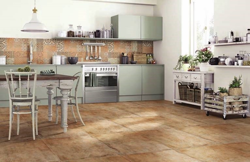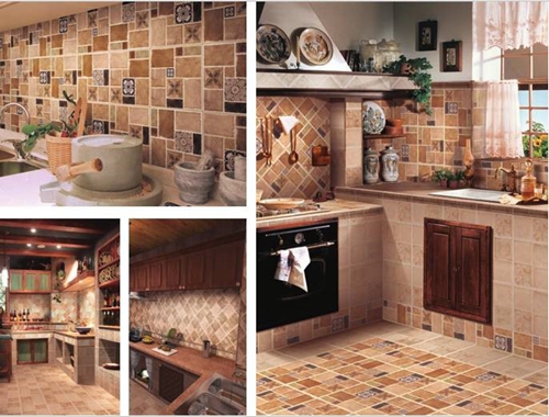 1506復(fù)古小磚滿懷意式田園的時(shí)尚風(fēng)情與簡(jiǎn)潔的藝術(shù)個(gè)性,豐富的色彩搭配使得廚房十分“吸睛”。