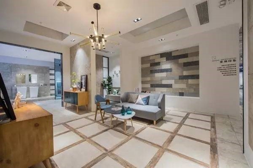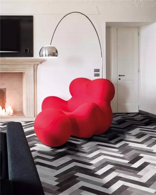 ▲抽象的后現(xiàn)代,幾何拼花藝術(shù),不再是呆板單一的平面,給家?guī)?lái)不一樣的藝術(shù)范。
