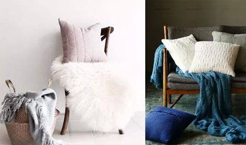 人體最能感受溫度的方式是觸碰,一條毛毯能迅速提升我們的體感溫度,構成冬季的溫暖基調(diào)。冬季的居室布置,應多使用柔軟的毛線或布藝,這樣可以增加溫暖的氛圍。