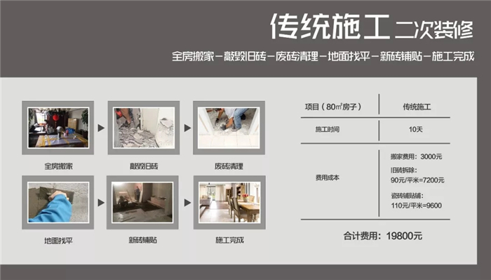 因為省去了砸墻拆地的麻煩,原本需要一個月甚至更長的工期,現(xiàn)在15天就能完成。