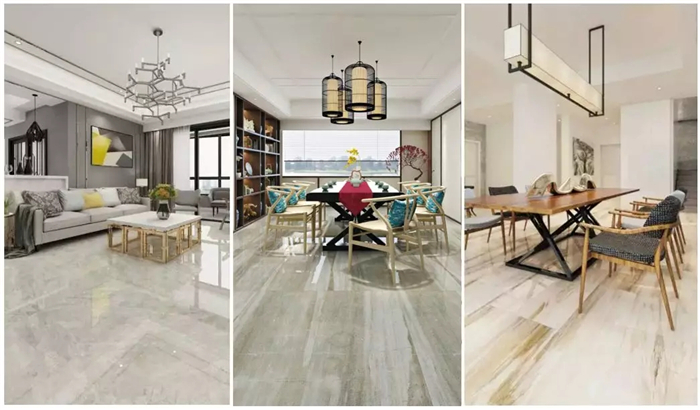 ▲地面鋪貼蒙娜麗莎薄磚系列·新卡門灰, 搭配整體的灰白色調(diào)讓空間看起來更加寬敞明亮