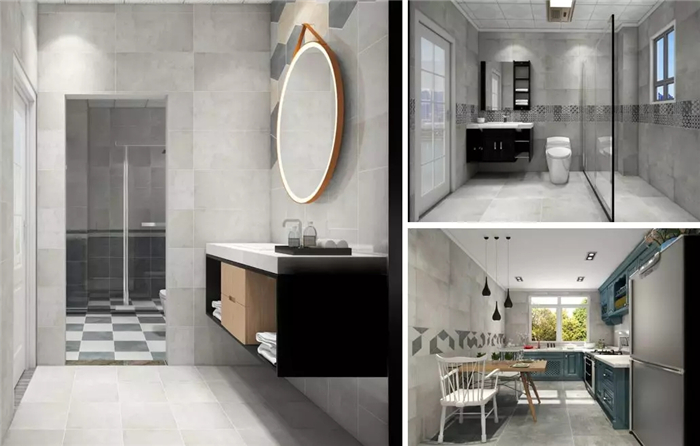 ▲安全系數(shù)較高的仿古磚早已成為當下廚衛(wèi)裝修的熱門選擇