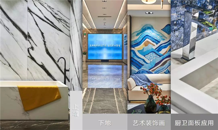 在大規(guī)格陶瓷的表面進行彩雕、堆雕或噴繪的工藝處理,釉面色彩效果逼真,防火防潮還易于打理,為空間增添了濃厚的藝術(shù)觀賞性。