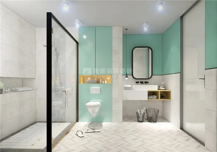 ▲衛(wèi)浴間特別適合薄荷綠,沐浴的時(shí)候有大片綠色相伴,心情更加舒暢明凈