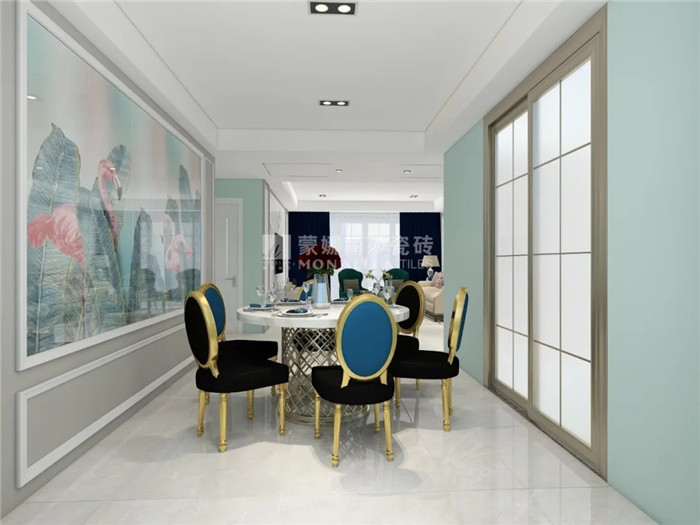 很多人覺(jué)得薄荷綠用起來(lái)很難與空間其他配色協(xié)調(diào),但不妨把心放寬一點(diǎn),它既適合作為大面積用色,運(yùn)用在墻紙、乳膠漆、瓷磚等背景材質(zhì)上,也可以用在軟裝上成為空間的點(diǎn)睛之筆。