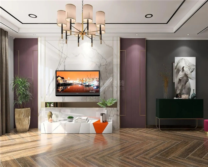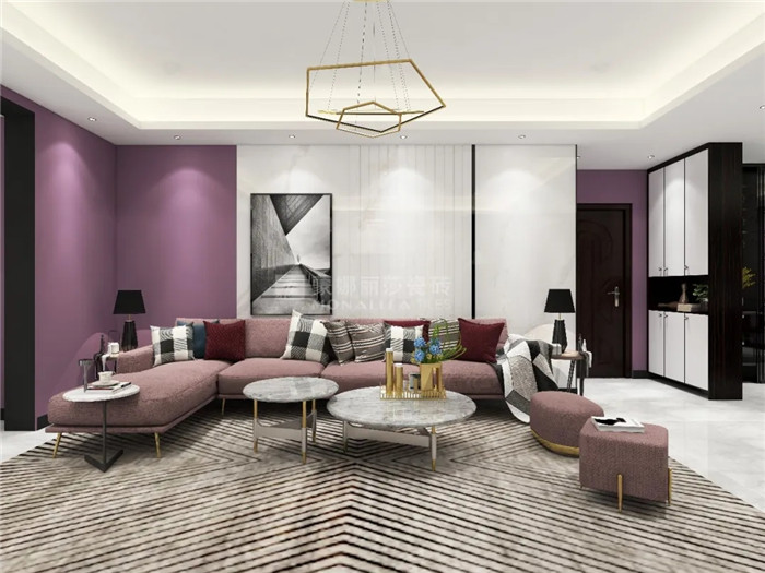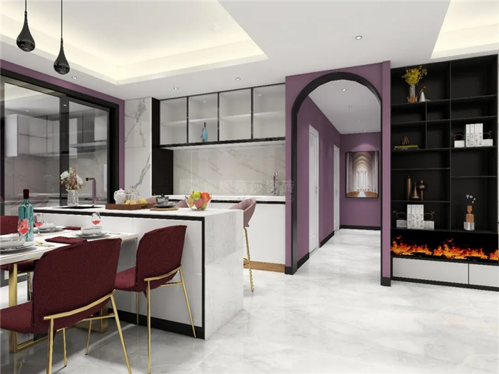 一抹紫色背景墻,可以說(shuō)是空間裝飾中一點(diǎn)驚艷的小心機(jī),展現(xiàn)著居住者成熟的魅力,賦予環(huán)境內(nèi)涵和深度。