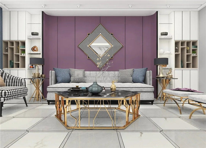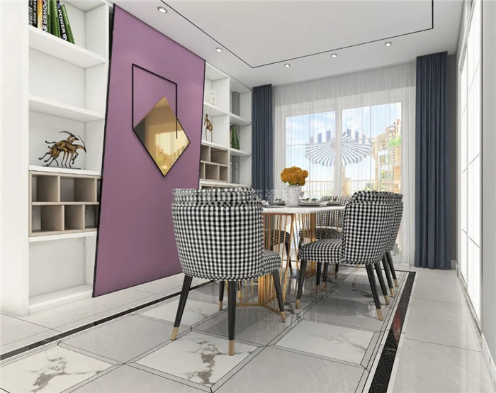 濃郁的紫色調(diào)搭配大理石紋理,營(yíng)造出優(yōu)雅的現(xiàn)代空間。搭配金屬材質(zhì)家具,帶有復(fù)古雅致的格調(diào)。