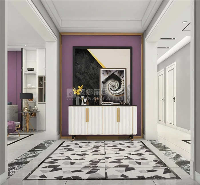黑加侖紫屬于暗色系,與大規(guī)格的白色仿石瓷磚搭配能夠保證空間的亮度,提升家居活力,彰顯貴族不凡格調(diào)。