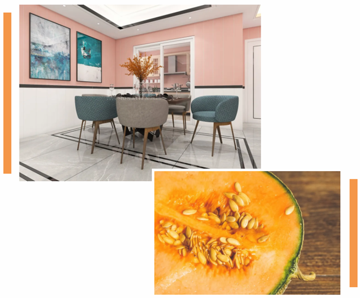 活力橙色一直是近幾年來(lái)頗受歡迎的色彩,明亮的色感與明媚的春色正好相配。甜甜的蜜瓜色,帶著水果的傾向,讓人忍不住回想起炎熱夏日享受瓜果的清甜感覺(jué)。