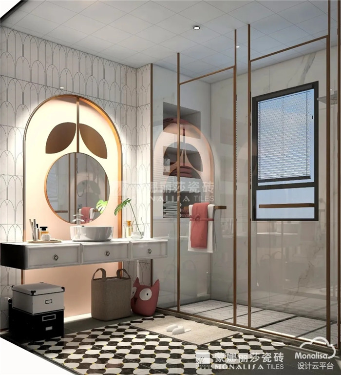 蜜瓜橙的除了擁有熱情奔放的視覺(jué)效果,在作為空間的點(diǎn)綴色彩時(shí)也毫不遜色。與淺色系的瓷磚進(jìn)行搭配,仿佛寂靜中的一束光芒,點(diǎn)亮了空間。