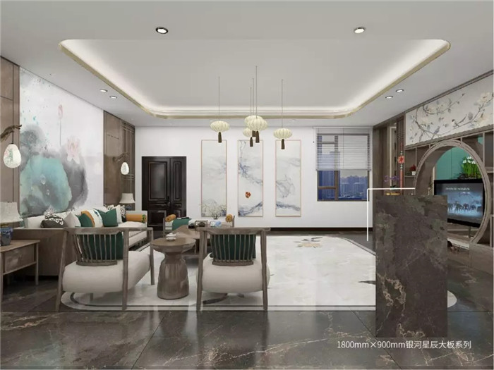 當(dāng)將經(jīng)歷過幾十億年地殼變化而造就的天然石材紋理,經(jīng)過復(fù)刻,與新中式相遇,置于家居空間中,會碰撞出怎樣的火花?