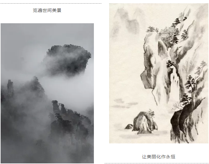 “只在此山中,云深不知處”云霧繚繞的仙境,“曾經(jīng)滄海難為水,除卻巫山不是云”的絕色美景,一句詩,便是一幅畫。倘若能把美妙的詩句變成我們居室中的曠世奇作,其乎妙哉?