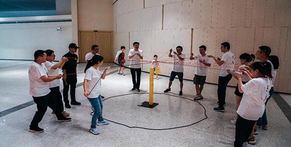 教练们将一天的活动安排地满满,每个活动都紧张、刺激、有趣。其中“合力筑塔”是让人印象最深刻的项目,在这项目中,队员们必须保持绝对的一致性与专注力,听从指挥,才能合力将塔筑好。任何一丝抱怨、放松都有可能导致功亏一篑,出现问题大家一起解决,不能相互指责,更不能半途而废。四组在第一次筑了5层塔时由于失误导致塔倒塌,有了放弃的念想,但在教练的鼓励下选择了重头再来,大家一步一个脚印,通力合作,最终绝地反击获得了第一名。