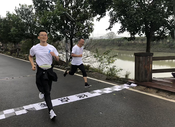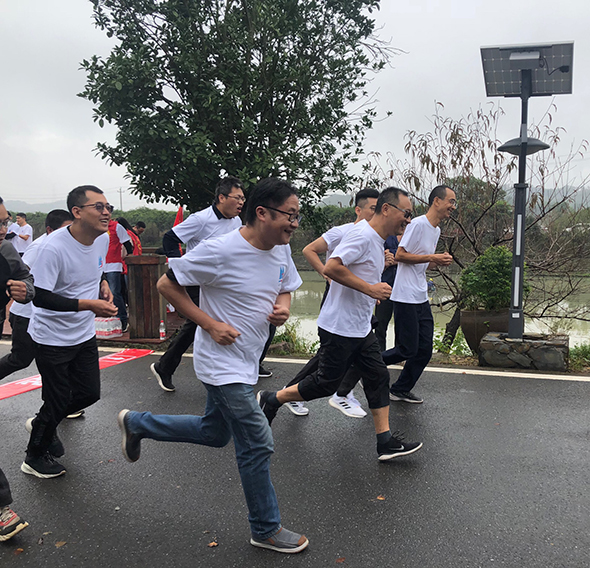 首先出场的是40岁以上男子中年组。王总一声令下,大家纷纷冲出起跑线,吴董作为表率也首当其冲,一路上大家有的你追我赶、有的喘着粗气、有的跑跑停停,却始终没有一人轻言放弃。最后公司副总包中泉率先冲向终点,获得了男子中年组冠军。吴董也紧咬其后获得了第二名的好成绩。