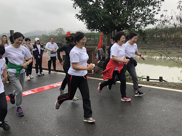 女子中年组,财务部裘芳是一个健身跑运动的爱好者,裘芳因性格开朗、工作热诚,被大家亲切的称为“裘姐”。裘姐无论平时工多忙都要抽出部分闲暇时间参加健身运动。在本次比赛中,她与第二名拉出了近200多米的距离,轻松夺冠。