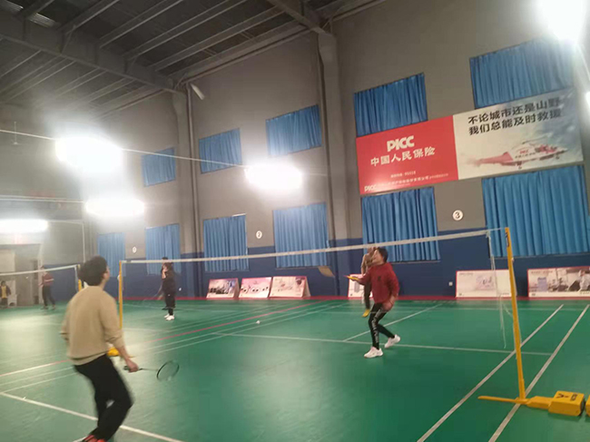 最值得一提的是我们年轻的人称“周教练”的造价部同事周盛吉,他不仅造价专业知识优秀,而且羽毛球技术也不含糊。边打边教,时不时的给同事们耐心细致的动作指导和战术指导,还为我们这些小白缠绕羽毛球拍手胶,俨然是个真正的“周教练”。
