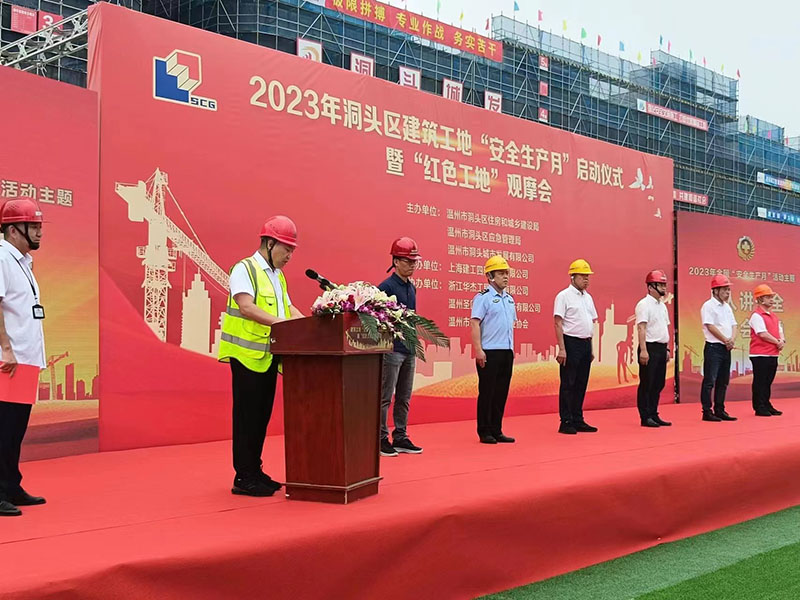 6月7日上午,2023年温州市洞头区建筑工地“安全生产月”暨“红色工地”现场观摩活动,在洞头区人民医院改扩建工程暨区公共卫生服务中心建设工程现场举行。浙江华杰工程咨询有限公司作为协办单位与温州市洞头区住房和城乡建设局、温州市洞头区应急管理局、温州市洞头区建设行业协会、温州市洞头城市发展有限公司、上海建工四建集团有限公司、温州圣匠建筑工程劳务有限公司共100余人共同参加该项目观摩会。