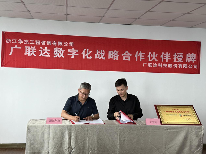 2023年6月13日下午,浙江华杰工程咨询有限公司与广联达科技股份有限公司在浙江华杰会议室签署战略合作协议,举行授权仪式。约定发挥各自优势和品牌影响力,在数字化转型方面开展全方位的战略合作,共同推动企业数字化技术发展和项目精细化管理的深化应用,加强企业自身的数据积累,促进企业整体管理能力的提升。