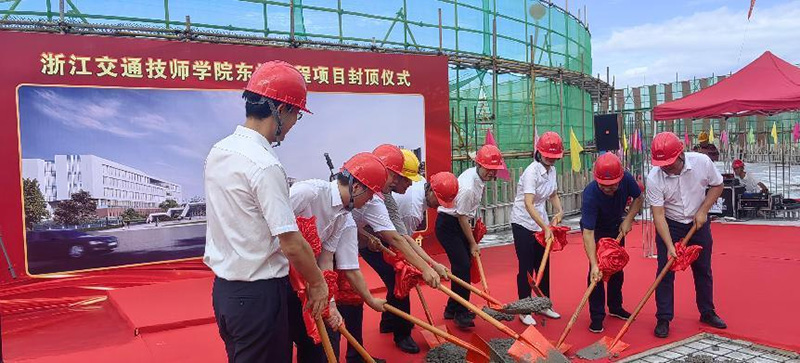 2023年7月16日上午,在业主、监理、设计、施工的共同见证下,伴随着图书馆屋面结构最后一铲混凝土的浇筑到位,由我司全过程咨询的“浙江交通技师学院东扩工程项目(一期)工程”全部单体工程顺利完成主体结构的封顶。