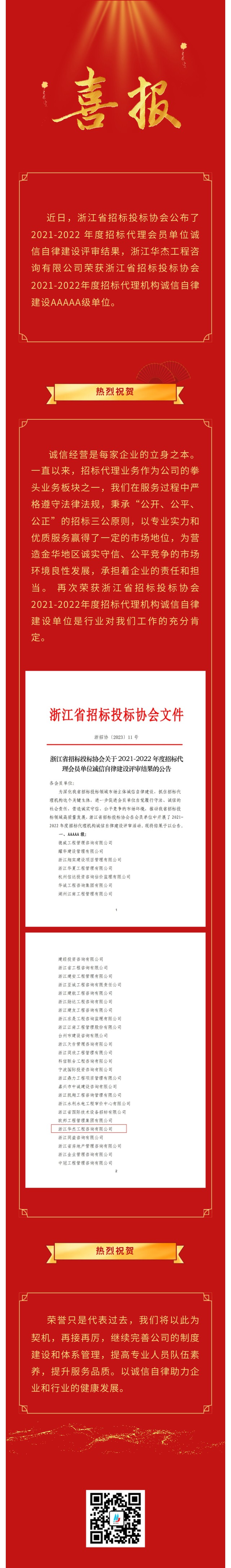 上一页: 热烈祝贺浙江华杰再次荣获“金华市建筑业中介服务龙头企业”荣誉称号