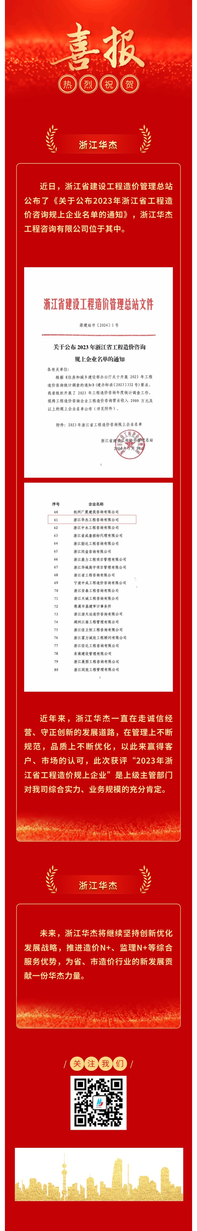 浙江华杰获评“2023年浙江省工程造价咨询规上企业”
