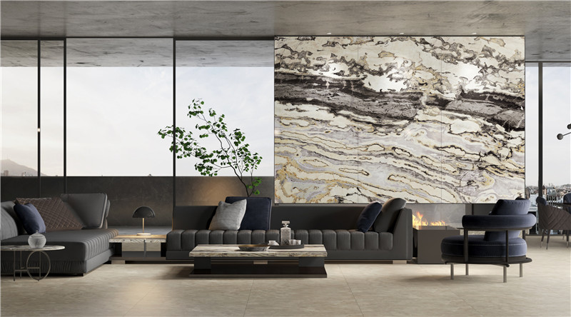 山水如畫,心歸自然。 空明純凈的白色肌底之上,承載著飄逸酣暢的水墨紋理, 似高山湖泊又如奔騰千里的大江大河, 氣勢恢宏卻又不失精致優(yōu)雅, 呈現(xiàn)出遠山如畫、碧水縈回、游鱗無數(shù)的絕妙意境。