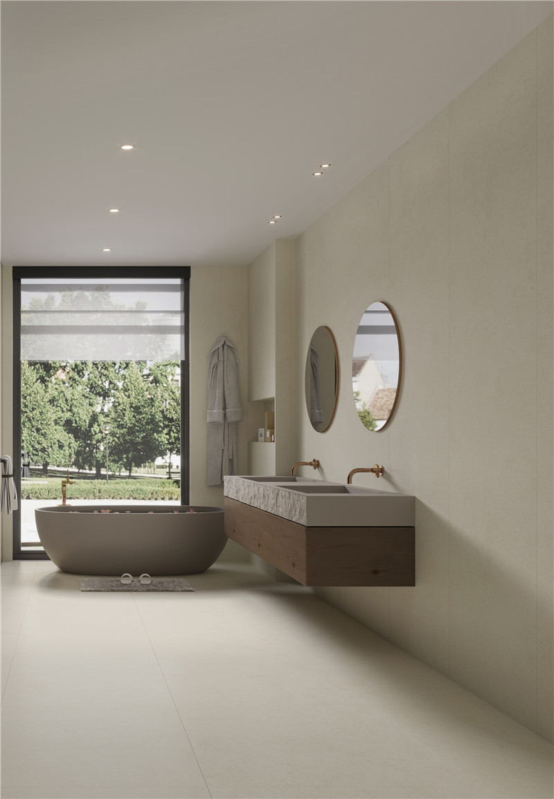 無論是家裝空間的家具、廚房、衛(wèi)浴、墻地面,還是工裝建筑的電梯、外墻、地面、前臺應用,巖板以強悍的物理性能覆蓋了空間一體化應用。同時,巖板可根據(jù)裝飾需要設計多種不同表面紋理,石材面、木紋面、墻紙面、布紋面、金屬面、純色面等各式裝飾風格,加上其卓越的功能特性可使其無縫穿插于不同空間領域的廣泛應用。
