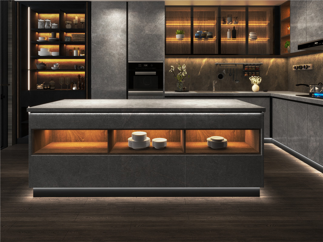 無(wú)論是家裝空間的家具、廚房、衛(wèi)浴、墻地面,還是工裝建筑的電梯、外墻、地面、前臺(tái)應(yīng)用,巖板以強(qiáng)悍的物理性能覆蓋了空間一體化應(yīng)用。同時(shí),巖板可根據(jù)裝飾需要設(shè)計(jì)多種不同表面紋理,石材面、木紋面、墻紙面、布紋面、金屬面、純色面等各式裝飾風(fēng)格,加上其卓越的功能特性可使其無(wú)縫穿插于不同空間領(lǐng)域的廣泛應(yīng)用。