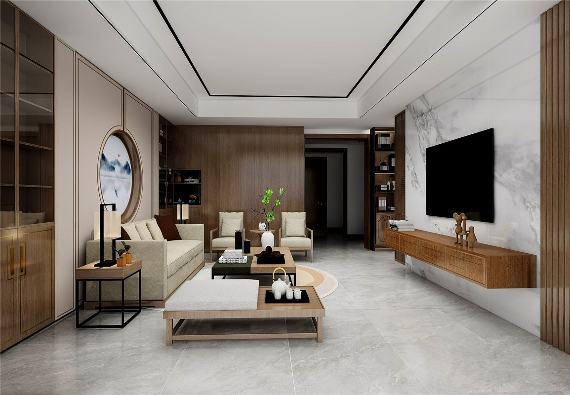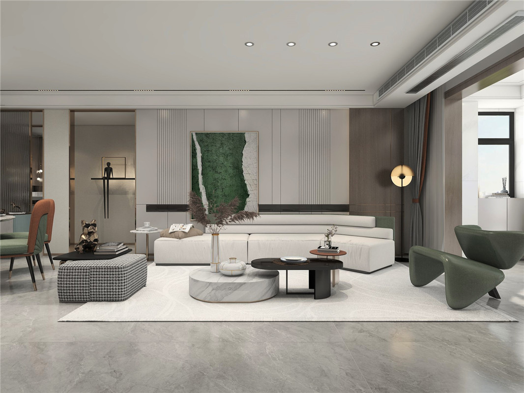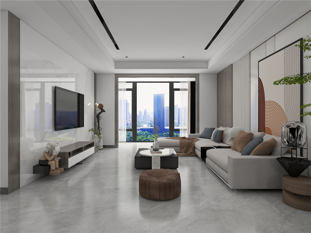 以云彩、流水為設(shè)計(jì)背景,灰白的紋理如行云流水般交替有序,呈現(xiàn)出山水的形態(tài),傳遞一份寫(xiě)意、休閑的生活理念。
