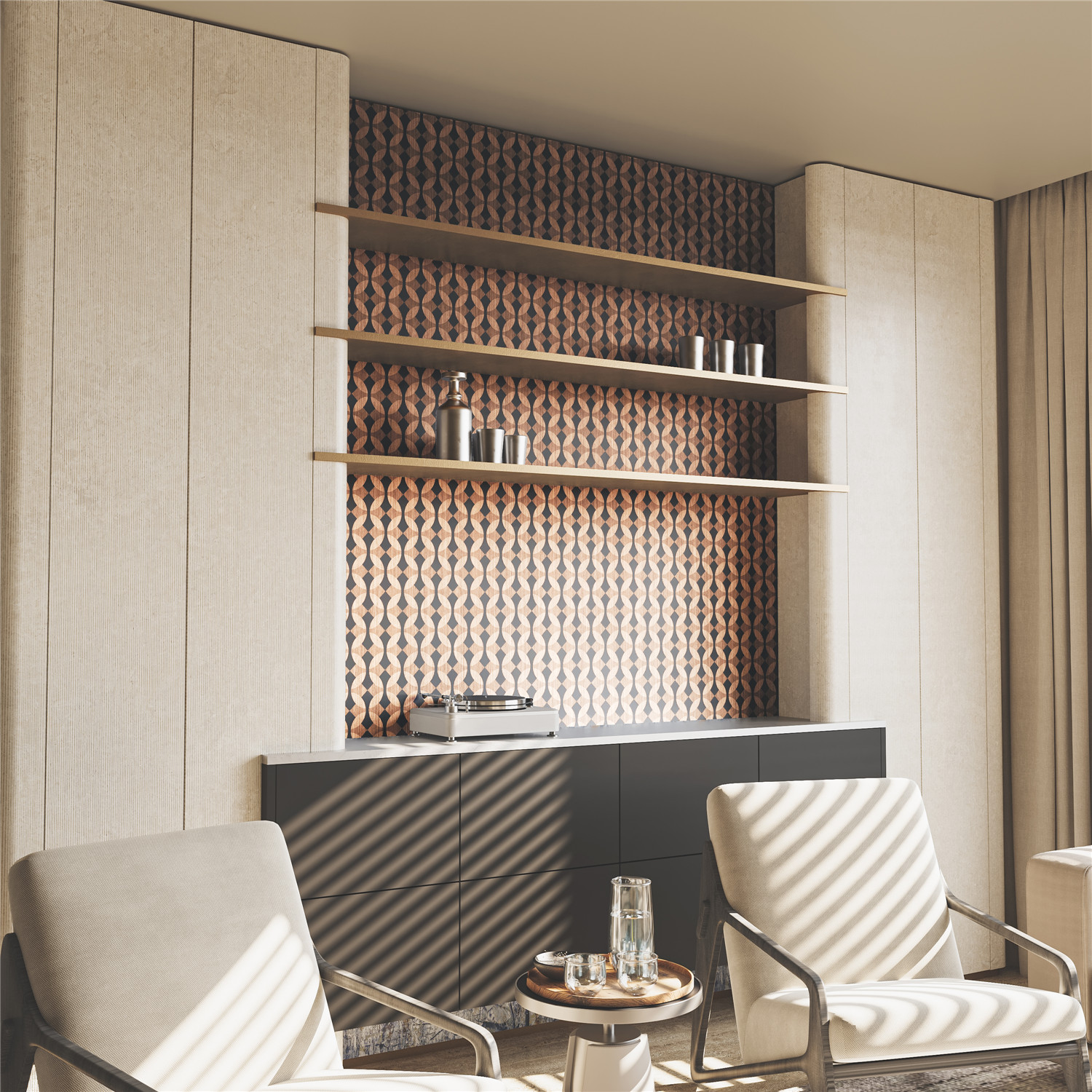 自然韻味與現(xiàn)代工藝完美融合,每一片瓷磚都仿佛承載著時(shí)光的印記,流露出歲月的靜好與自然的溫潤(rùn)。采用高精度噴墨技術(shù),細(xì)膩還原了木材的紋理與色澤,觸感舒適;出色的工藝表面既有木材的溫馨質(zhì)感,又兼具瓷磚的耐用與易打理特性,讓家的每一個(gè)角落都充滿生活的藝術(shù)與溫度。
